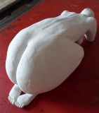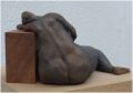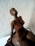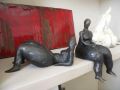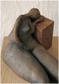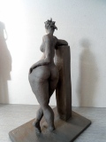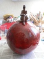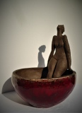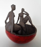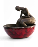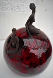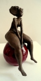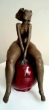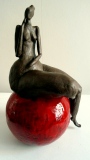 • Femme assise sur boule rouge, terre cuite émaillée.