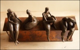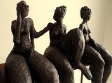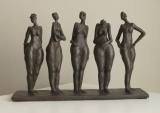 • Cinq femmes sur socle en métal, terre cuite patinée.